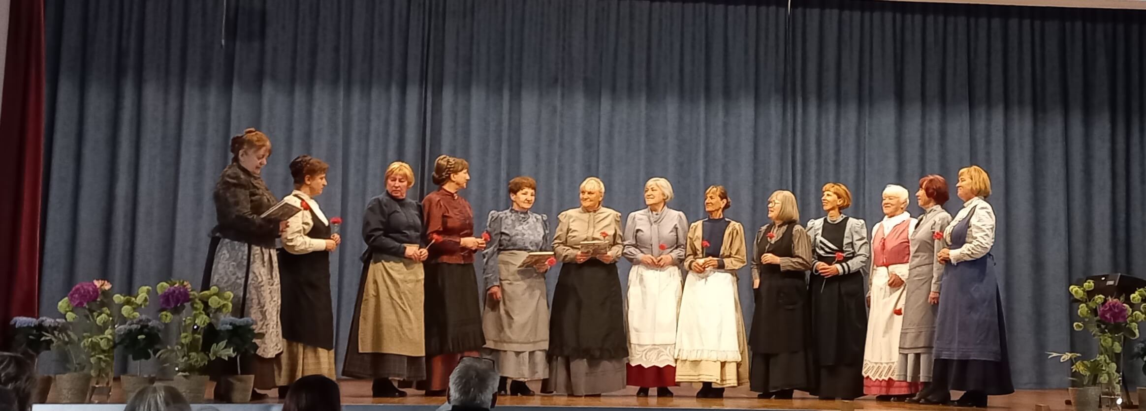 Skoraj noben projekt v društvu ne mine brez pevk Veselih Ribnčank, ki s svojimi nastopi v ribniških oblačilih in z narečno besedo poskrbimo za prijetno vzdušje, kamorkoli nas zanese pot. S svojim delovanjem smo dokazale, da starost ni meja za norčave in vesele urice. Tako smo se že v marcu, pod krinko razigranih ribic, ki jih s svojo ribiško palico lovi velikan iz Velike gore, sprehodile na čelu ribniške pustne povorke, ki jo vsako leto organizira Pustno društvo Goriča vas. V marcu pa smo naše poslanstvo zabeležile tudi z nastopom izven Slovenije, saj smo se udeležile 3. Festivala vseslovenskih skupin, tokrat v Budimpešti. Potovale smo skupaj s folklorno skupino Grmada in pevskim zborom Konca vas. Druženje v avtobusu in v budimpeški Čardi sredi gozda, nam bo ostalo v nepozabnem spominu. Bile smo ponosne, ko smo pred mnogimi poslušalci, zapele tudi pesem o Slovenski deklici in o naši Ribniški deželici,na katero smo tako ponosne. Izvedle smo tudi samostojne koncerte, v DSO Videm Dobrepolje – Vse najboljše za te, v DSO Fužine – Rože za vas, v DSO Ribnica – Veselo na Martinovo in ob Grajski kavarni v ribniškem gradu. Kot statistke smo sodelovale pri snemanju filma o ribniških gasilcih in na povabila organizatorjev zapele v Dolenji vasi na srečanju pevskih zborov zahodne Dolenjske, na Kulturni promenadi v ribniškem gradu, tradicionalno, kot grabljice na Bregu, kjer društvo Veter prikazuje košnjo po starem. S svojim nastopom smo razveselile tudi paraplegike iz vse Slovenije, ki so tokrat gostovali v Ribnici, imele čudovit nastop na Telški žetvi in na Tamburanju va Kostelu. Članice društva smo leto zaključile s prednovoletnim srečanjem, kjer smo si zaželele vse najboljše, zdravo, srečno in veselo leto 2026!