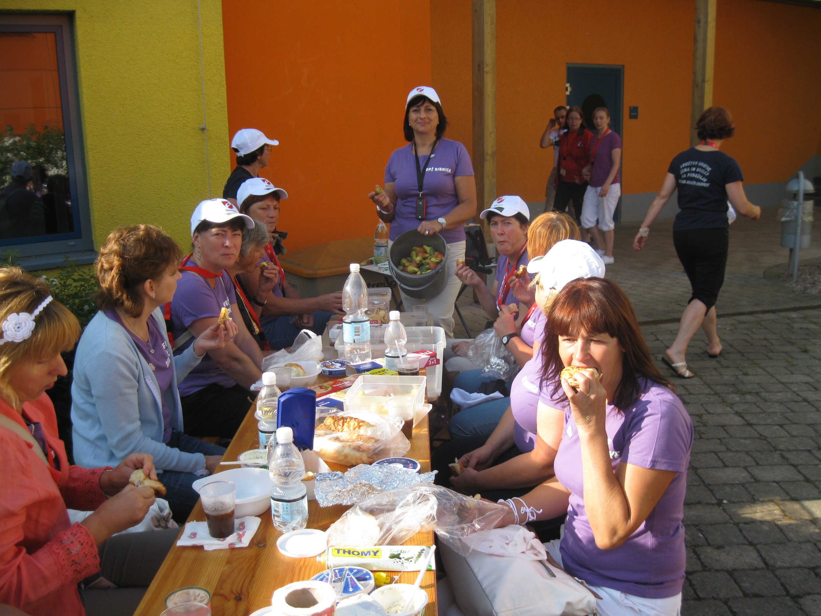 Druga je bila dan kasneje, ko smo v Puconcih v Prekmurju na njihovi 10. Dödlijadi kuhale – po ribniško – krompirjeve žgance. V kotlih nad naravnim ogljem, je na njihovem igrišču pred šolo, dödeljne kuhalo kar 29 skupin. Obenem je bila v šoli postavljena tudi 15. kulinarična razstava, na kateri smo tudi sodelovale in prejele „zlato kijanco“, ki je pomenila prvo nagrado. Še posebno smo bile ponosne na to, da sta nas na prireditvi spremljala župan Občine Škofljica, g. Ivan Jordan in naš župan g. Jože Levstik, ki se vabilu verjetno ni mogel odreči, saj ga je poleg predsednice društva, vabila še „kraljica suhe robe“. Prireditev ob podelitvi nagrad pa ni minila brez ljudskih pevk Veselih Ribnčank, ki smo družbo pod prireditvenim šotorom ogrele in pripravile do skupnega prepevanja. Vesele in razigrane smo zaključile naše gostovanje v Puconcih in obljubile, da jih tudi me povabimo na kakšno našo prireditev.